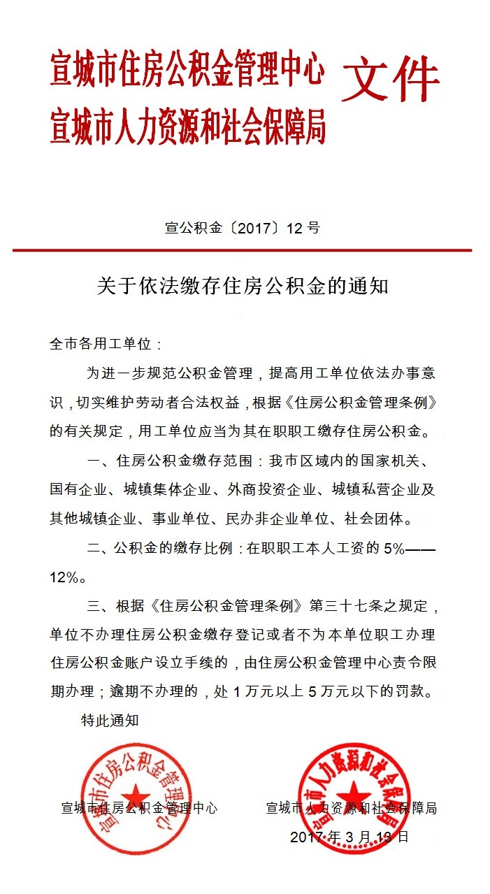 关于依法缴存住房公积金的通知